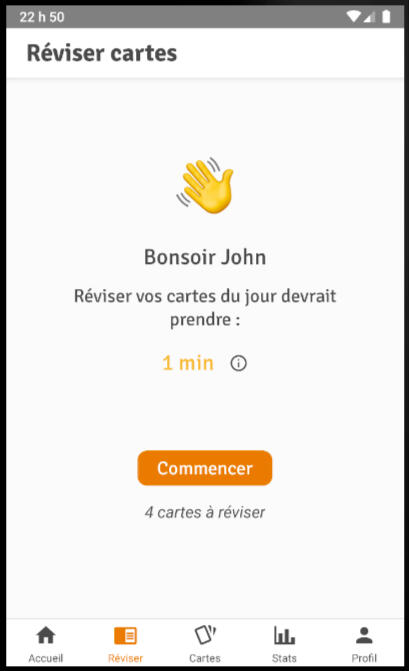 Chaque jour l'appli sélectionne pour toi les cartes que tu dois réviser et espace progressivement les révisions au fur et à mesure que tu les maîtrise.